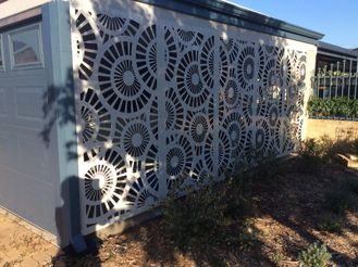 Существует принципиально три вида крепежа металлических паннелей к стене: саморезами через открытое внешнее отверстие, вырезанное в самом декоре с помощью ЧПУ станка, скрытый крепеж в виде п-образной пластины, приваренной с тыльной стороны декора, и через профильные трубы, монтируемые к тыльной сторне панели.