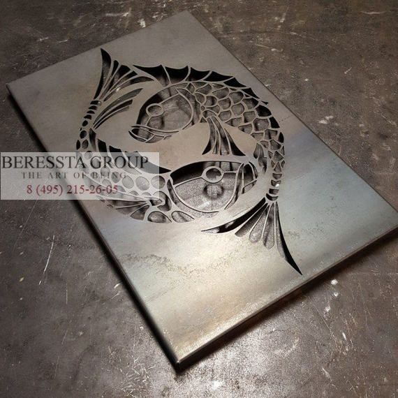 Существует принципиально два вида крепежа металлического декора к стене: саморезами через открытое внешнее отверстие, вырезанное в самом декоре с помощью ЧПУ станка, и скрытый крепеж в виде п-образной пластины приваренной с тыльной стороны декора.
