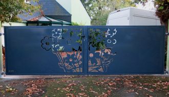 Художественные ворота с резкой металла - 068 - "ЦВЕТЫ".