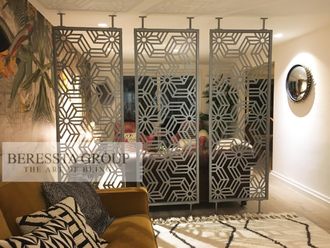 Существует принципиально три вида крепежа металлических паннелей к стене: саморезами через открытое внешнее отверстие, вырезанное в самом декоре с помощью ЧПУ станка, скрытый крепеж в виде п-образной пластины, приваренной с тыльной стороны декора, и через профильные трубы, монтируемые к тыльной сторне панели.