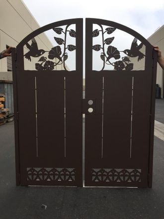 Материал: профильная труба 40х25, Круг 10, Круг 12, декоративные листья, крепежные петли, замок.