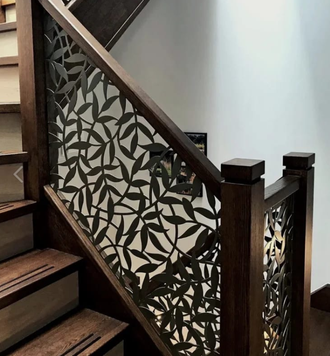 Лестничные стальные перила компании БЕРЕССТА изготавливаются благодаря особой технологии плазменной и гидроабразивной резки металла. Благодаря собственному оборудованию и работе наших дизайнеров, нам стали доступны любые рисунки и орнаменты.