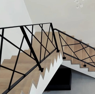 Перила имеют простой дизайн, который выглядит стильно и дорого. Для наибольшего контраста перила следует использовать в сочетании с деревянными ступенями в светлом помещении. В таком случае они будут смотреться ярко, являться одним из акцентных элементов интерьера.