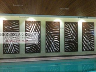 Стеновой декор используется как в помещении, так и снаружи в качестве фасадных панелей для создания уникального дизайна окружающего пространства. Орнамент рисунка определяется заказчиком: в работе могут быть использованы силуэты растений и животных, графические орнаменты и целые сюжетные композиции.